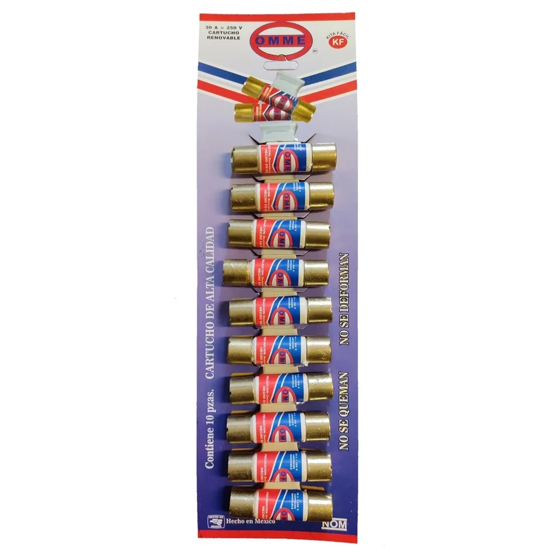 Paquete de 10 fusibles KitaFácil 30A. Protección confiable para sistemas eléctricos a precio de mayoreo.